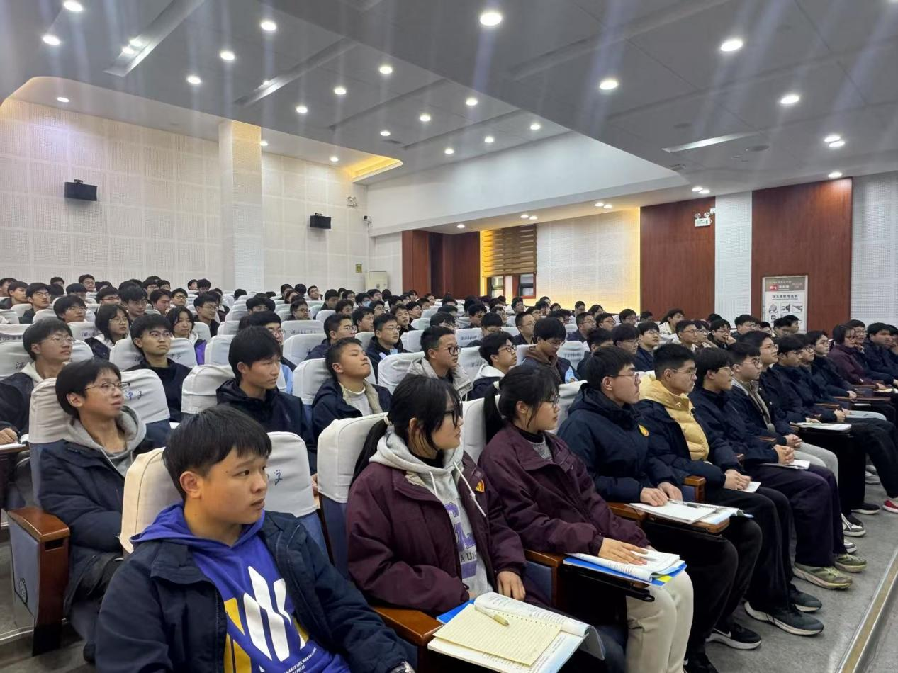 签约授牌仪式后,机械工程学院智能制造系主任助理李浩然为浦江三中高一、高二学生带来一场题为《从“中国制造”到“中国智造”》的科普讲座。讲座内容以工业革命发展史为脉络,生动讲述了中国制造业从传统制造向智能创造的跨越式发展;结合“中国制造2025”国家战略,深入解析智能制造、绿色制造等前沿方向,展现我国制造业转型升级的壮阔蓝图。活动现场,李老师与中学生展开热烈互动,不仅普及了机械工程学科知识,更激发了青少年对科技创新的探索热情。