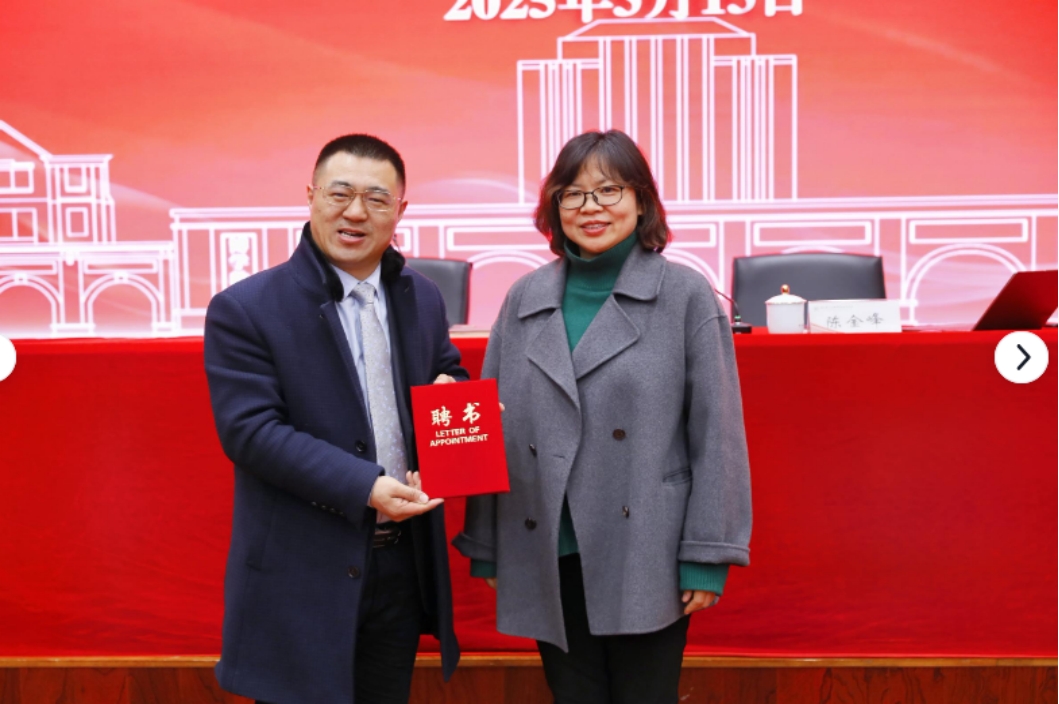 王吴芳代表学院对陈金峰律师受聘担任我院内控管理顾问表示热烈欢迎,并现场颁发聘书。