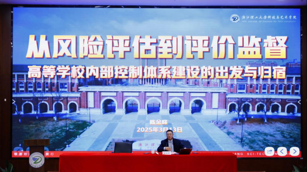 3月13日下午,科技与艺术学院举行内部控制管理培训班开班仪式,会议邀请浙江金驰律师事务所主任陈金峰作专题培训。学院纪委书记王吴芳、副院长李传莹、阳盛益参加会议。会议由党委副书记方水明主持。