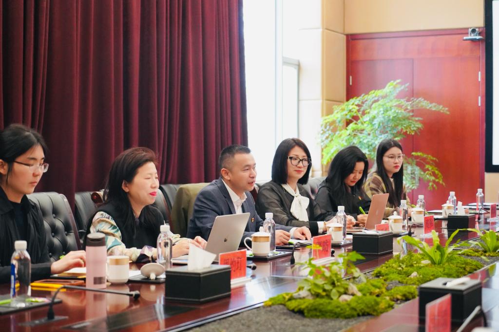 刘琼详细介绍了森马校招的要求、流程以及本年度在浙江理工大学的人才招聘情况。她表示,森马高度重视校招生的培养与发展,为其搭建了广阔的发展平台,配备开放的晋升机制。随后,双方就未来产教融合的深化方向、人才培养的优化策略,以及招聘就业的创新模式构建,进行了深入的探讨与交流。