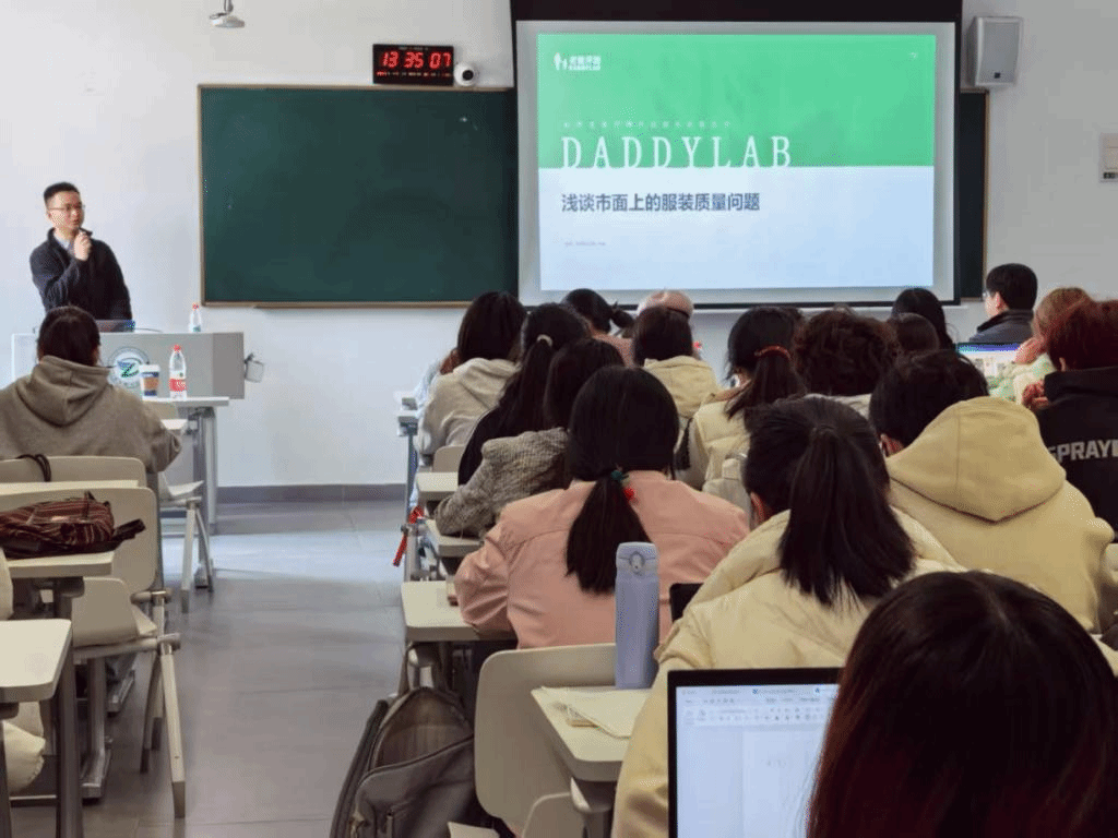 杨陇峰从纺织品服装生成流程、纺织品服装质量风险、检测不合格原因以及纺织品服装宣传规范四个方面对当前服装质量管理现状中重点突出的问题进行系统讲解,向同学们分享了老爸评测的推文制作流程,并与同学们交流了课程作业的关键技术环节。整场讲座深入浅出,案例丰富,现场师生互动热烈,杨陇峰还结合实际案例,为同学们提供了许多宝贵的学习建议。