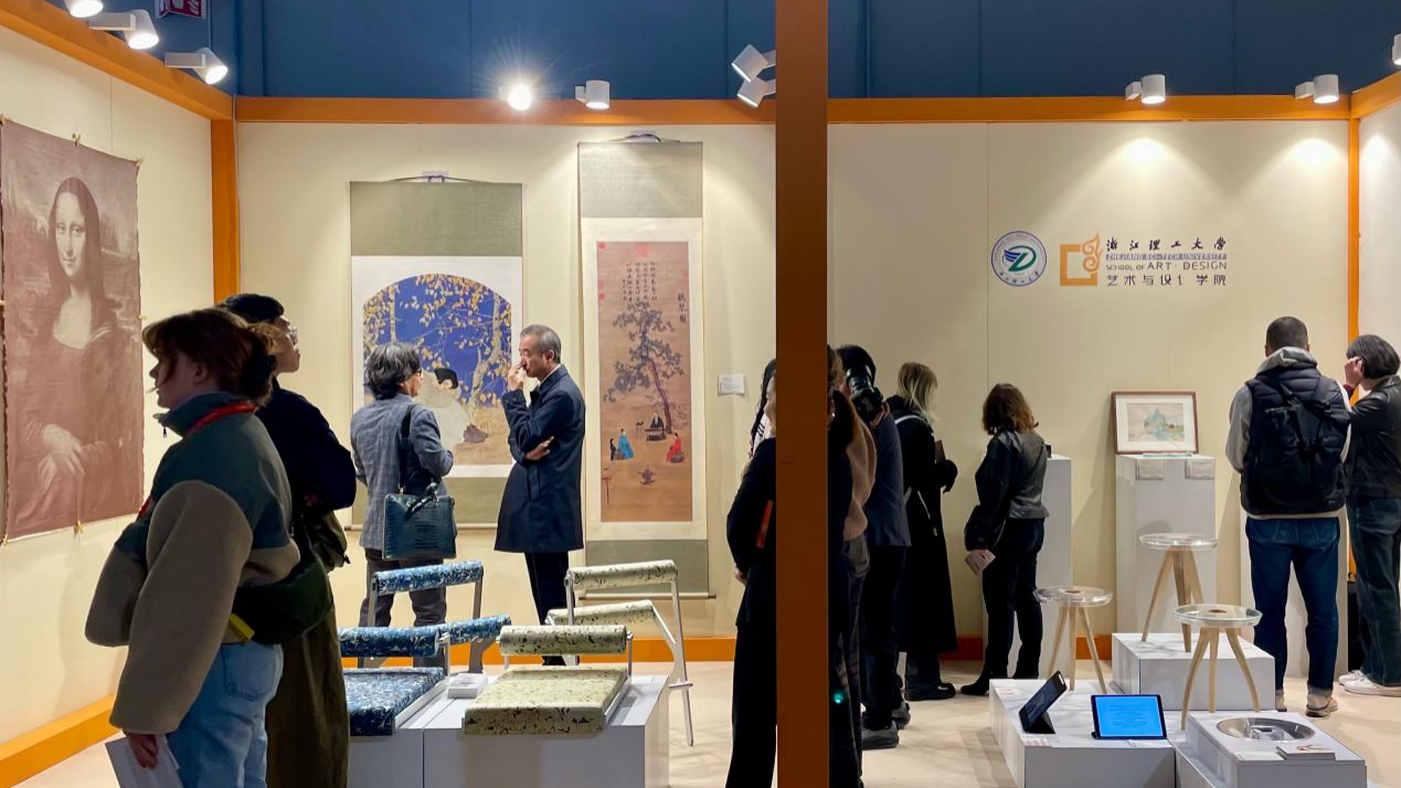 展览现场,纵跃古今的丝绸织锦作品、时尚家居用品以及传统手工艺创新产品吸引了众多国际观众的目光。这些作品不仅展现了浙江理工大学在丝绸设计领域的卓越创新实力,更是中国传统工艺创新性传承与创造性转化的生动成果。将匠心与功能、美学与科技完美结合,既具有当代的实用性与审美价值,又蕴含着深厚的文化底蕴,充分体现了我校在传承与创新中的独特理念与不懈追求。
