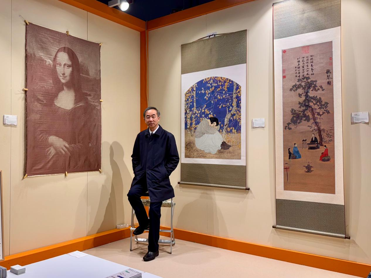 李加林教授织锦作品:《蒙娜丽莎》《听琴图》《秋冥》(从左至右)