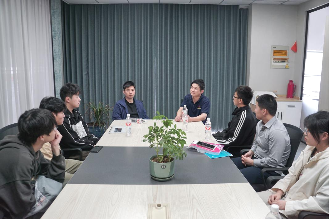 在浙江昊能科技有限公司,卢宏庆对仰滢一行的到来表示热烈欢迎,并详细介绍了公司的发展历程、文化理念、产业布局及运营模式,他表示昊能科技一直以来都以“差别化的产品,个性化的定制,人性化的服务”作为企业核心价值观,希望与学院深化合作,吸引更多浙理学子加入昊能科技。
