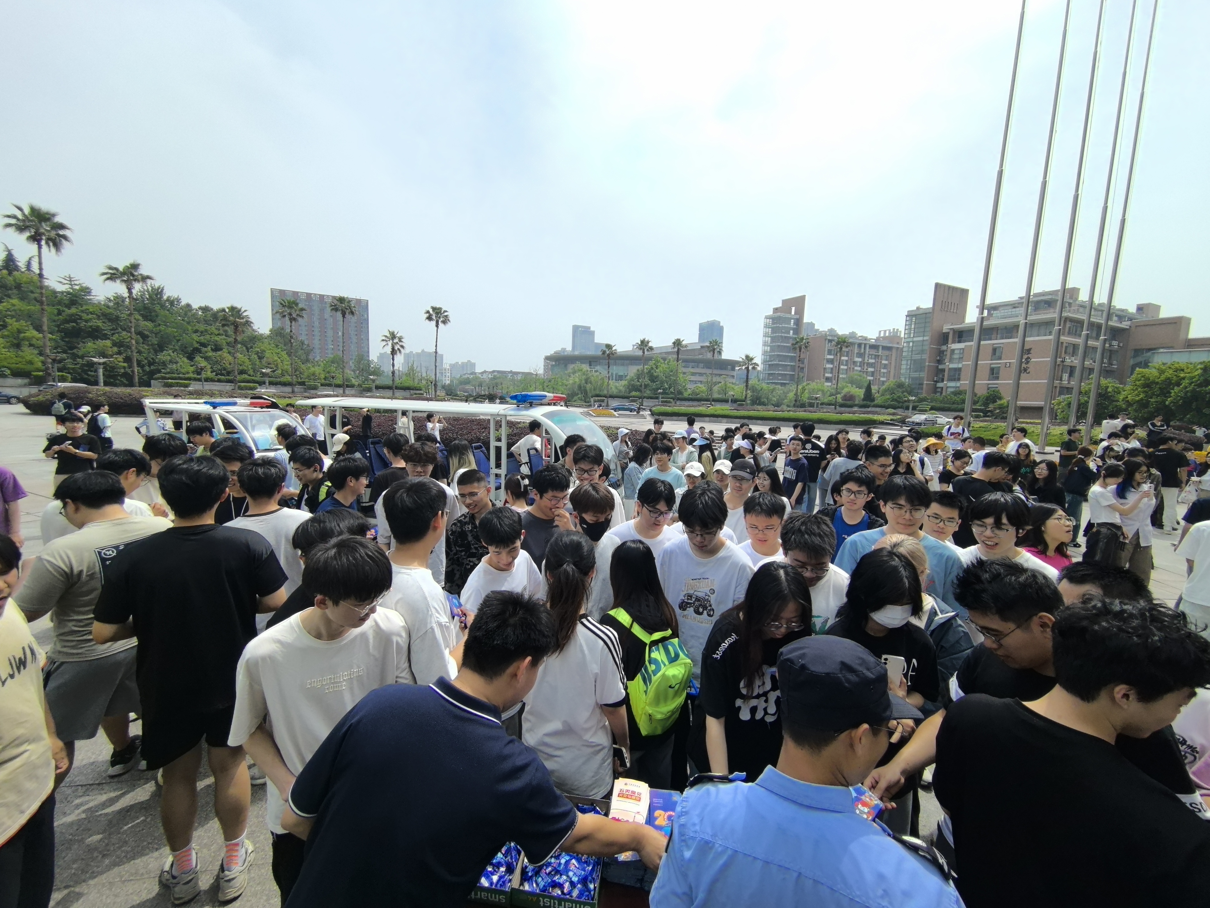 图书馆内师生员工陆续疏散出来,聚集在世纪广场。
