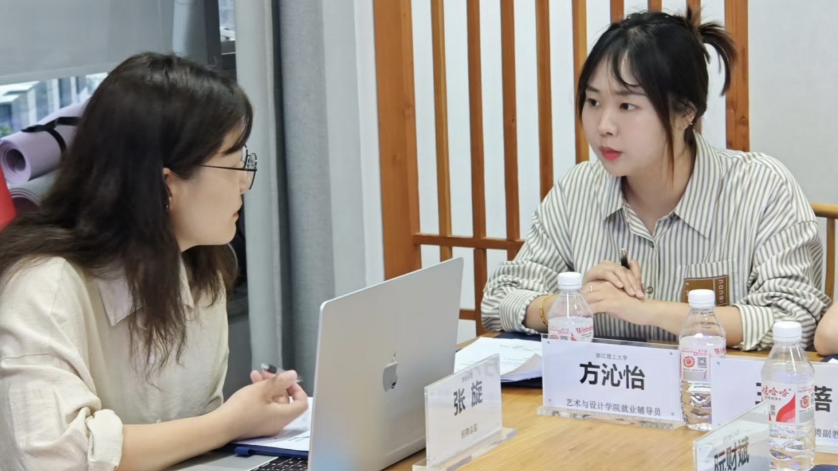 学院就业辅导员方沁怡与群核科技招聘总监张旋对接人才实习就业工作