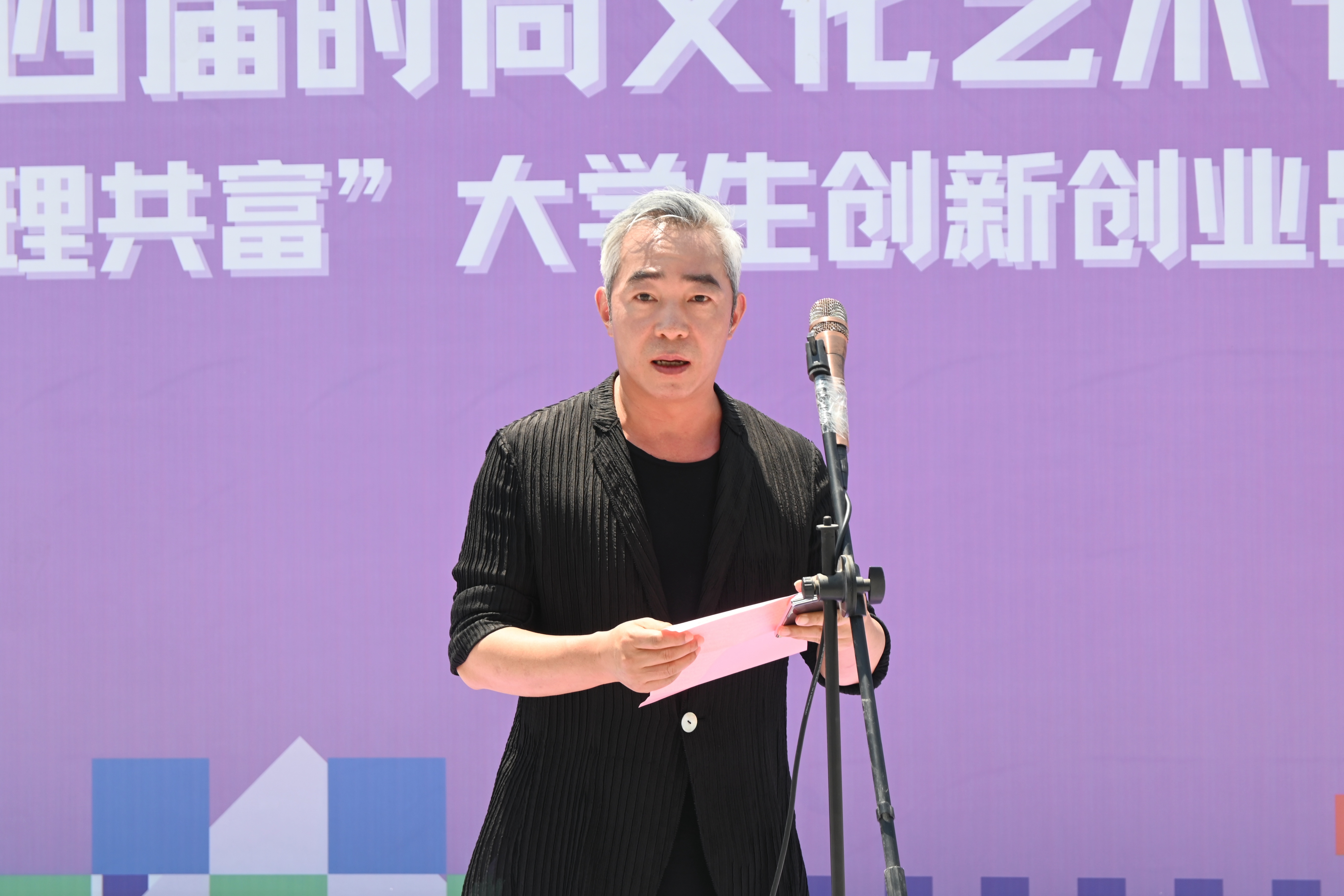 吴跃峰致辞,他表示本届艺术节在传承“艺术时尚”“创新时尚”基础上,突出“创业”新主题,希望我院学子在创业的过程中保持对时尚的求索之心、创新赤子之心和行业责任之心,做传统文化守护者与时尚创新开拓者,助力中国时尚走向世界。
