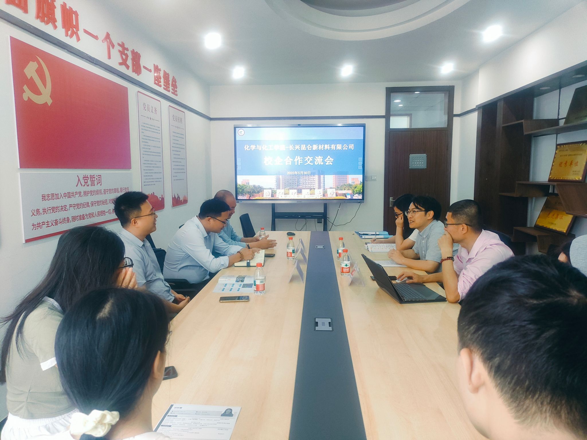 为深入推进校企合作,湖州昆仑亿恩科电池材料有限公司副总经理王传水、人力资源总监杨玉明、招聘经理储著银一行来访化学与化工学院。近日,化学与化工学院党委副书记王勇能、化学系副教授郭云南、学工办主任胡丽、就业辅导员等接待了王传水一行。双方在19号楼522会议室召开座谈,2025届毕业生代表一同参会。