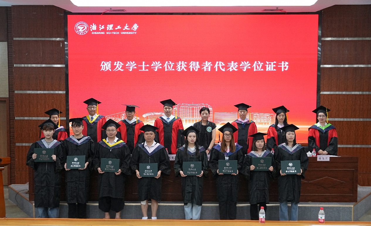 典礼结束后,毕业生们齐聚合影,在毕业展板前留念、拍照打卡,为他们在浙理的求学之路画上圆满句号。未能到现场参加毕业典礼的同学通过学院教学平台在线上参加。
