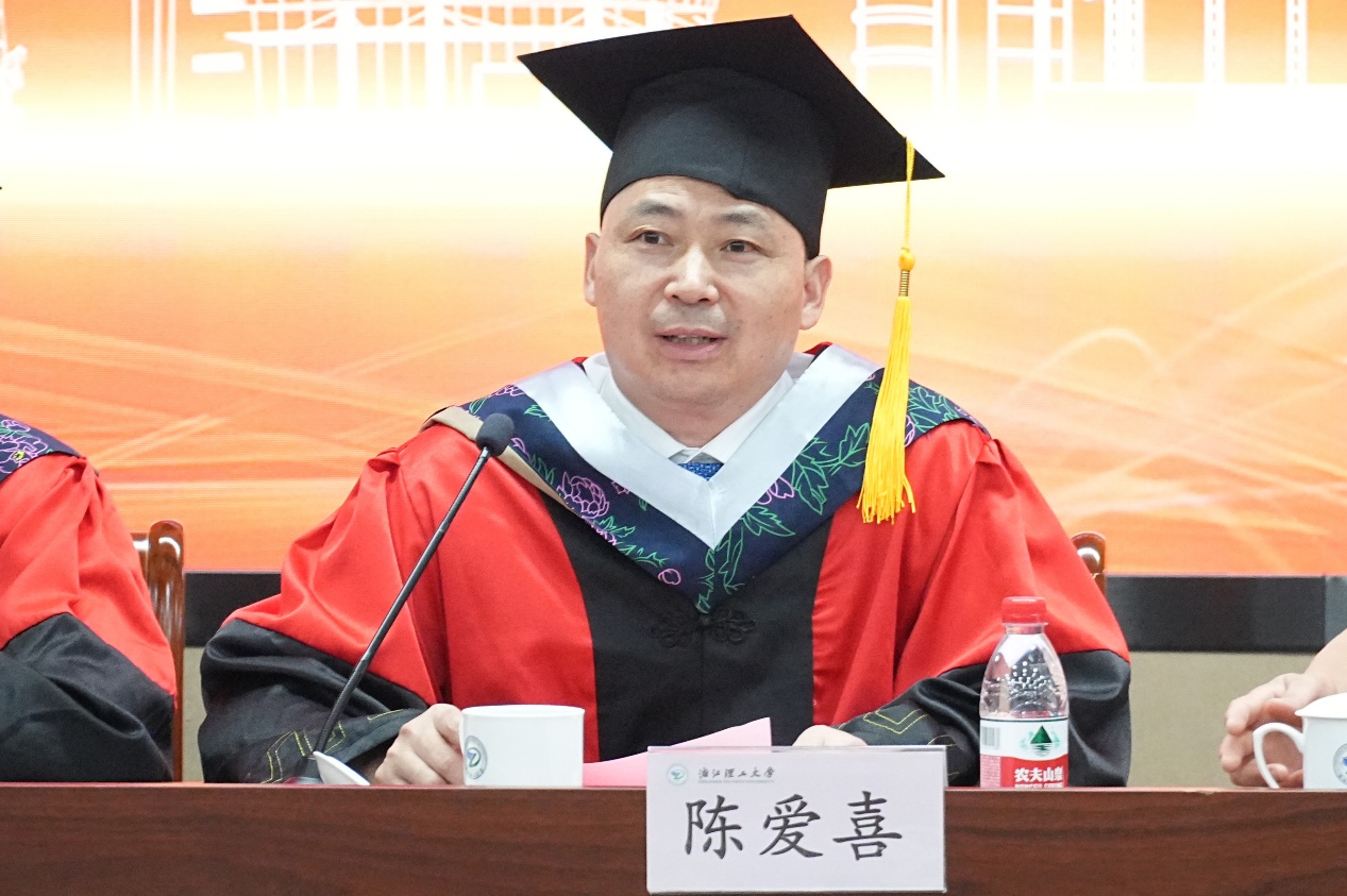 陈爱喜代表学校向2025届毕业生致以最热烈的祝贺和最殷切的期望。他从“多重身份”的奋斗者、“终身学习”的践行者、“未来世界”的贡献者三个维度向全体毕业生提出三点期望和要求:一是要永葆学习的热忱,“学如钱塘潮不息”。希望同学们要保持好奇与探索的精神,在专业领域深耕,在跨界领域拓展,让终身学习成为最闪亮的人生名片。二是要践行知识的价值,“织就经纶为世用”。希望同学们要主动寻找与岗位工作的契合点,把专业知识转化为解决生活难题的钥匙,在实践中检验理论,在反思中升华认识,使专业知识在实践中不断丰富和发展。三是担当时代的责任,“敢将奋斗绣山河”。全体毕业生要在实现民族复兴的伟大征程中,勇担时代大任,将个人理想融入时代洪流,以“功成不必有我,功成必定有我”的决心,用实际行动谱写新时代的奋斗篇章。