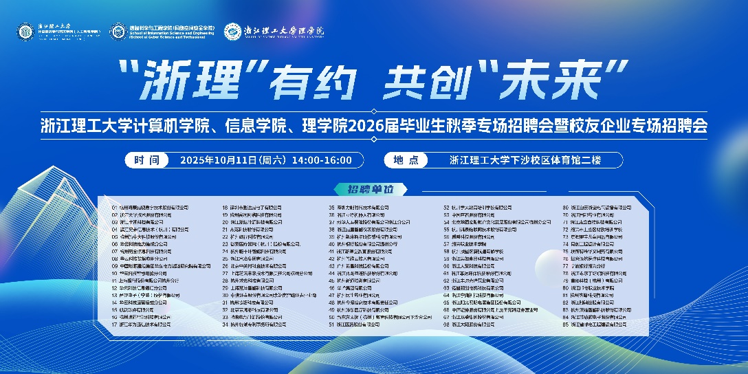 10月11日下午,由计算机学院、信息学院、理学院共同承办的2026届毕业生秋季专场招聘会暨校友企业专场招聘会在下沙校区体育馆二楼举行。本次招聘会邀请了杭州海康威视数字技术股份有限公司、浙江大华技术股份有限公司、浙江宇视科技有限公司、恒生电子股份有限公司等近90家实力雄厚的用人单位,为学生倾心提供了近3000个就业岗位。活动现场热闹非凡,参与其中的学生达700余人。同学们以积极的心态和充分的准备主动递交简历,展现出对开启职业征程的强烈期待与憧憬。