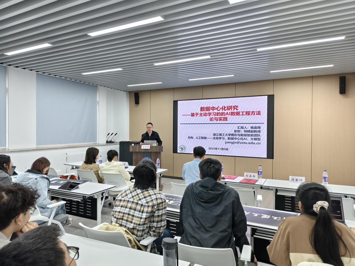学院青年教师杨嘉南带来《数据中心化研究》分享。他聚焦计算机视觉领域,详解“数据筛选、数据工程、主动学习”等核心内容,剖析数据在大模型训练中的关键作用,为有志于科研的学子提供了从“理论到实践”的清晰路径。