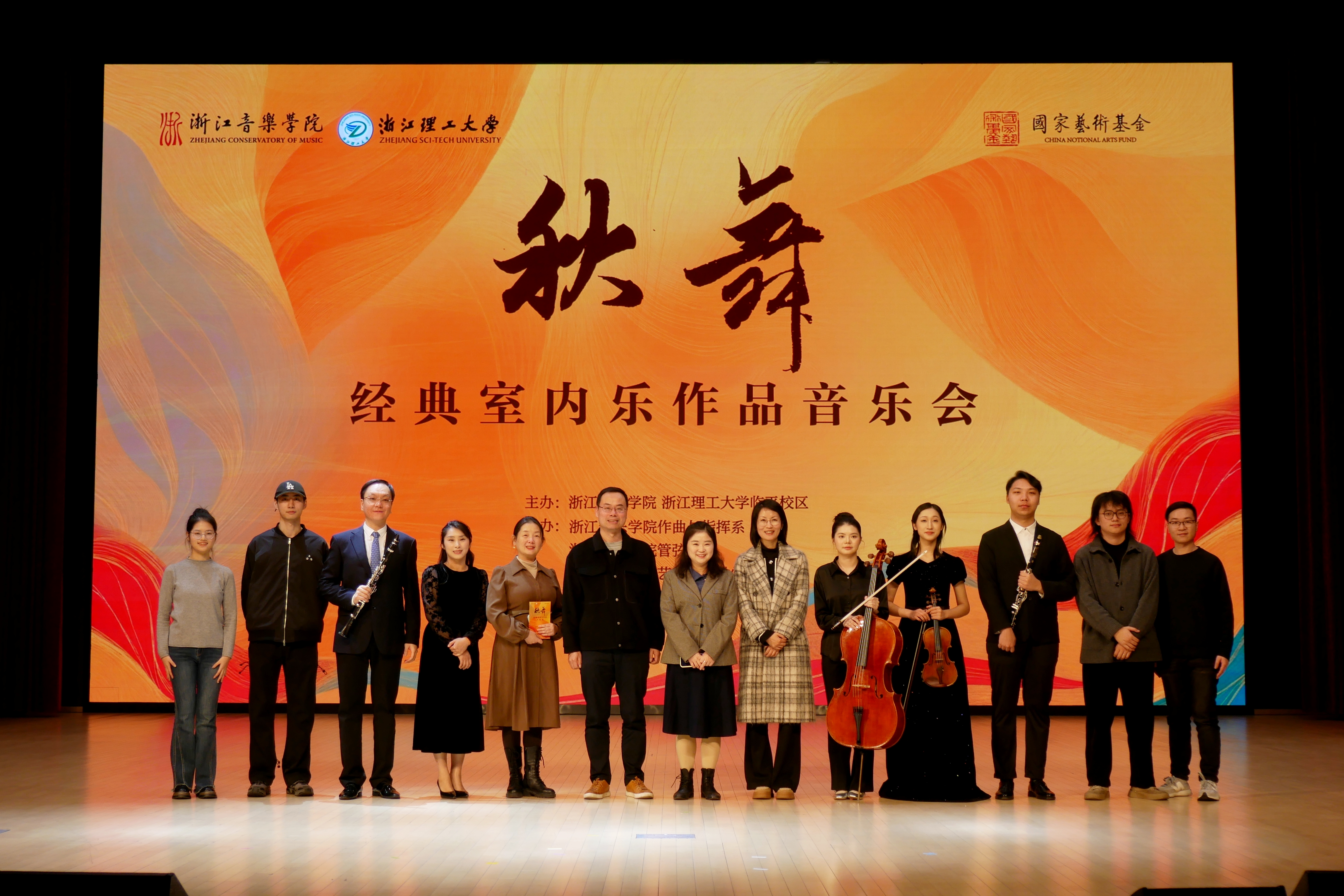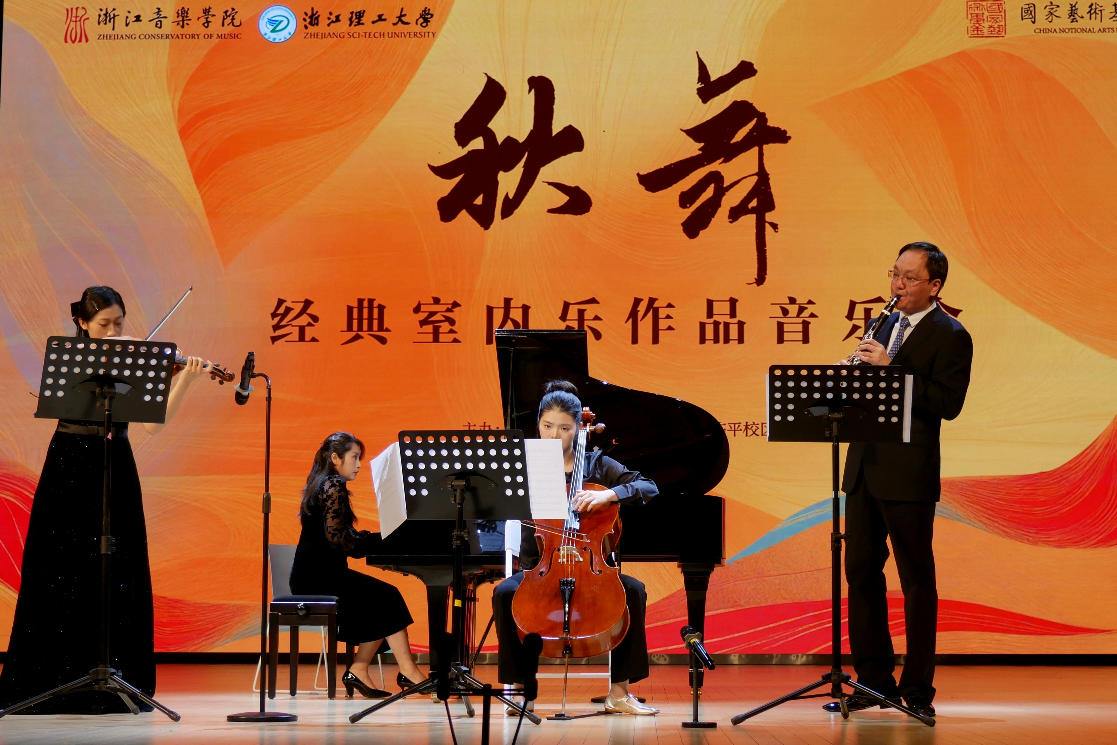 为深入贯彻落实党的二十届四中全会精神,丰富临平校区校园文化生态,激活师生艺术审美活力,11月19日晚,临平校区首届秋日文化季系列活动之“秋舞——经典室内乐作品音乐会”在临平校区小剧场精彩上演。本场音乐会由浙江音乐学院与浙江理工大学临平校区联合主办,浙江音乐学院作曲与指挥系、管弦系、艺术指导教学部及附属音乐学校共同承办,以中西合璧的艺术表达、精湛娴熟的演绎水准,为现场观众带来一场高雅艺术盛宴。