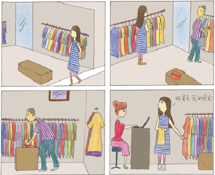 这件事对陈敏触动很大,晚上回到学校寝室,她就把下午发生的事情用动漫插图的形式画了下来,并告诫同班同学在商店购物时,要特别留意。