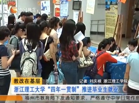 10月8日,中国教育电视台《中国教育报道》栏目以“浙江理工大学‘四年一贯制’推进毕业生就业”为题,报道了我校重视毕业生就业工作,切实加强就业全员化工作机制的事迹。