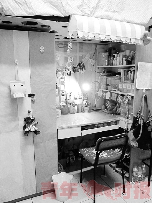 她说,装扮寝室真不难,而且也不用大费周折地去淘宝买很多饰物,完全可以自己动手制作。像她们这样一个寝室,所有的“装修”材料加起来不足百元。“大家都认为复古的小欧式圆顶棚很好看,这个最简单了。室内每个人的课桌前的顶棚,就是用不穿的衣服布条缝制起来,然后配上蕾丝做点缀就可以了。哪怕是寝室门口的凌空所搭的圆顶棚,那也就是多用了一张瓦楞纸做骨架。”