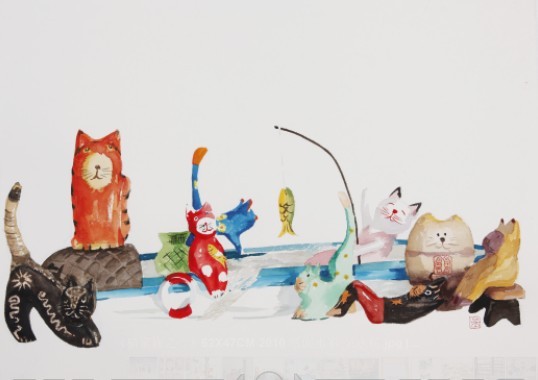 艺术家吴永杭是浙江理工大学艺术与设计学院副教授、硕士生导师、美术学(应用插画方向)专业负责人、科艺学院艺术与设计系主任,他在带插画研究生课程的同时,别出心裁地创作了水彩插画系列作品《猫家族》。