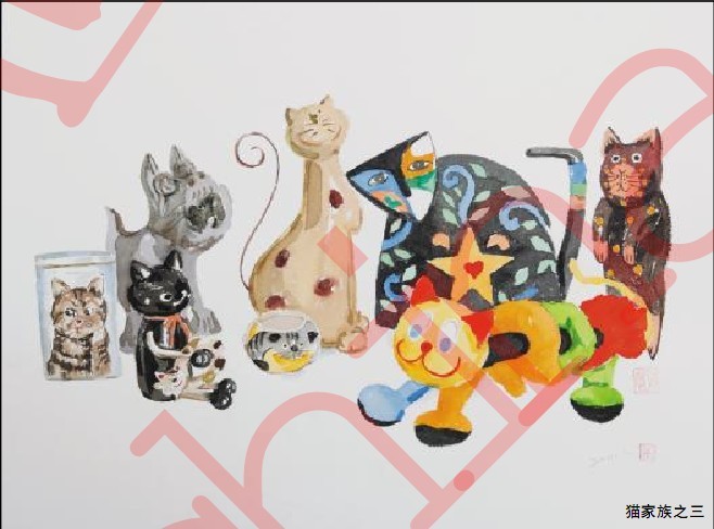 《猫家族》系列作品呈现的生活状态有色彩、有情趣,真实且自然,有红色的奔放、黑色的沉稳、灰色的忧伤,浅浅地慢慢地以不同的姿态伴随左右,各种形态的“猫家族”,恰似人生的小舞台。《猫家族》像一本书,还有更多精彩的地方值得我们翻阅;《猫家族》像一盒巧克力,可以让我们不断地品尝到各种口味;《猫家族》像一杯茶,暗香浮动,需要细细地品味…
