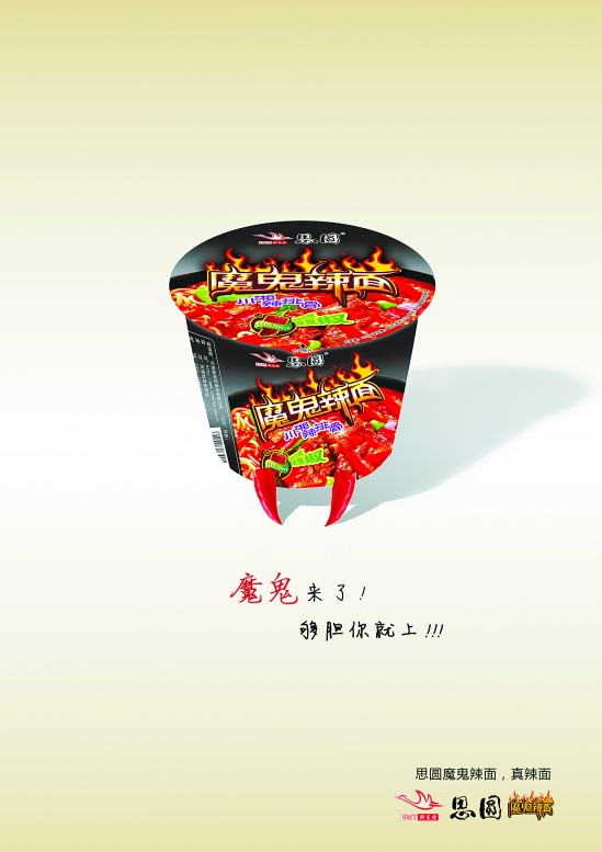 6月25日,由中国广告协会主办的以“第八届中国大学生广告艺术节学院奖”结果揭晓,浙江理工大学科技与艺术学院广告专业的叶知舟、方俊皓、苏禹聪,设计作品“思圆魔鬼辣面獠牙篇”获平面类铜奖。设计者直接在产品包装盒上加上最能代表魔鬼的獠牙,向受众传递产品本身“辣”、“魔鬼”的特性,激发受众的好奇心。