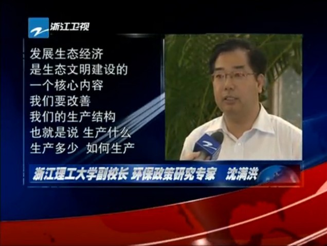 系列报道第一篇“生态经济快速发展”专访了我校副校长、环保政策研究专家沈满洪。沈满洪表示:发展生态经济是生态文明建设的一个核心内容。我们要改善我们的生态结构,也就是说,生产什么,生产多少,如何生产,像这样的一些问题,我们要反思。这里面涉及到我们整个经济结构调整的问题,转到以依靠科技投入、知识投入为主的经济结构,使整个产品的附加值达到尽可能多高的水平,同时生产过程也真正实现清洁生产。
