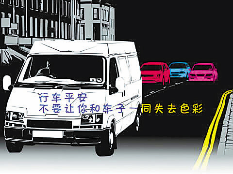 酒后驾驶、斑马线前不礼让行人、超速行驶……这些不文明而且危险的交通行为都被设计在“爱心车贴”里。中国美院平面设计专业的黄煜峰对超速行为深恶痛绝,他设计的警示语“油门猛轰,幸福成空”让人过目难忘。相比之下,浙江理工大学管荣萍的“爱心车贴”柔和不少:夕阳西下,回家路上,一位天使手捧爱心温馨提示,“为了您和您的家人,开车不喝酒,喝酒不开车”。
