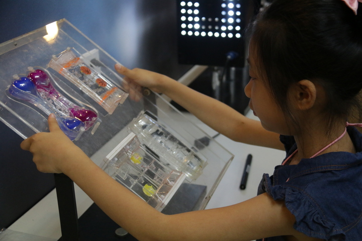 亲子秀的活动结束了,但孩子们的探索之旅仍未结束。在学生志愿者的带领下,20组家庭参观了理学院青少年科普教育基 地。浙江理工大学理学院青少年科普教育基地现为浙江省社会科学普及基地、杭州市青少年科普教育基地,依托学院物理学、心理学省级实验教学示范中心开展科普教育活动,现有百余台教学仪器设备用于科普知识的教学与宣传。