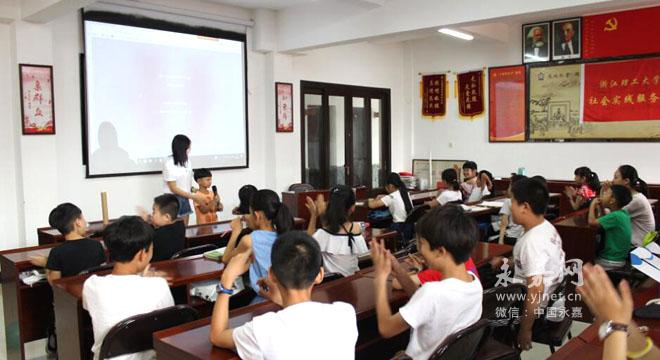 “我是你们的彩虹姐姐!”“我是你们的温柔姐姐!”7月12日,浙江理工大学理学院“悠悠我心系古城”志愿服务团队进入永嘉县岩坦镇屿北村开展支教活动,志愿者们独特而生动的自我介绍方式很快吸引了孩子们的注意。