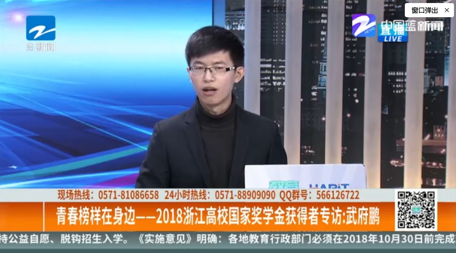 12月25日,浙江公关新闻频道专访了2018浙江高校国家奖奖学金获得者,我校理学院研究生武府鹏。在校期间,该学生第一作者共发表学术论文12篇,累计影响因子91.4,被引次数52次。其中包括Chemical Reviews,Nature子刊,Cell子刊等期刊。