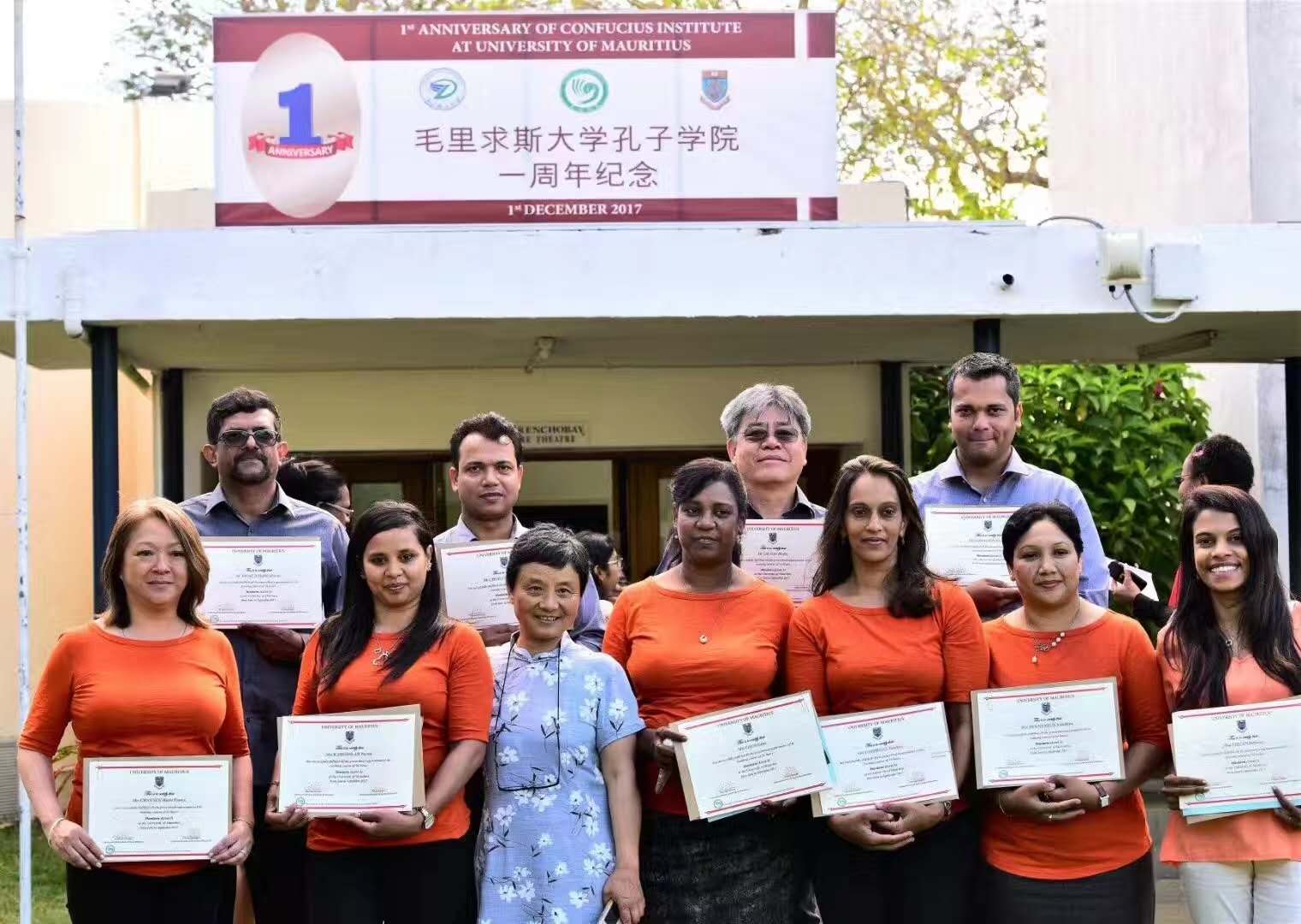 毛里求斯大学孔子学院一周年纪念(前排左三为张也频)