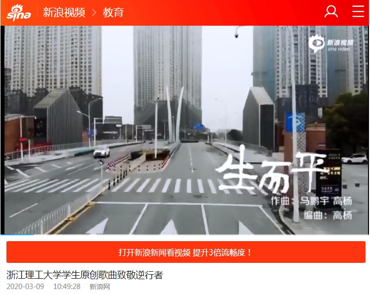 3月9日,新浪网、浙江新闻报道我校师生原创歌曲致敬逆行者。