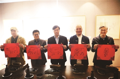 浙江理工大学党委书记吴锋民,党委副书记陶伟华,校纪委书记陈正奎及师生代表在十竹斋艺术馆馆长魏立中的指导下,共印“五牛图”水印作品。