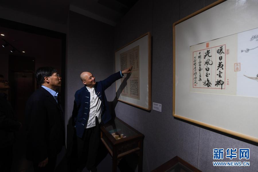 当日,“细水长流·木语有声——十竹斋木版水印艺术作品展”在浙江理工大学丝绸博物馆正式开展,展出《廿四节气》《四美图》《一团和气图》等58幅木版水印艺术作品以及雕版。2014年,十竹斋木版水印技艺入选国家级非物质文化遗产代表性项目名录。新华社记者 徐昱 摄
