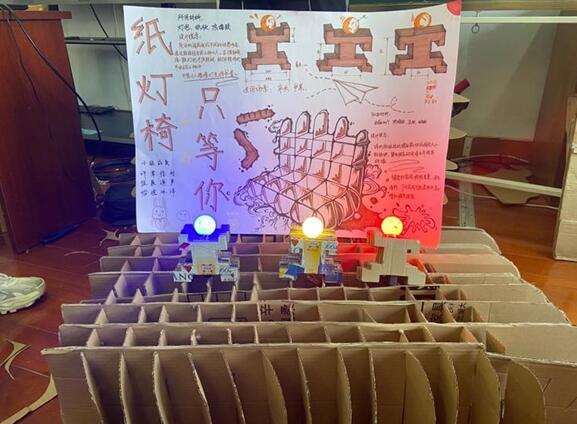 据了解,日前在阿里巴巴公益基金会牵线下,浙江理工大学艺术与设计学院数字媒体艺术系党员教师张小波带领学院本科一年级大学生,走进余杭黄湖中心小学展开设计实践活动。一起来看看这些好玩的作品作品:纸灯椅 只等你