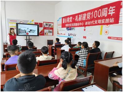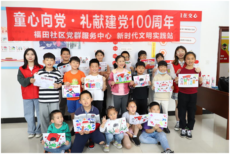 为推进党史学习教育走深走实,4月24日上午,义乌福田街道联合浙江理工大学经济管理学院举办“童心向党·致敬建党百年”活动。活动在辖区党群服务中心、文化礼堂、红色基地等7个地点同时开展,以党史宣讲、党史知识趣味竞赛、绘画、唱歌、走红色基地为主要内容,旨在提高儿童和青少年对党史的认知,加深对党史的了解,让儿童和青少年萌发更深层次的爱国主义情怀。