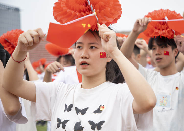 5月21日,近500名浙江理工大学生命科学与医药学院的党员师生和团员青年齐聚万人体育场,举办迎建党100周年百人大合唱快闪。在场师生高唱《没有共产党就没有新中国》和《唱支山歌给党听》,抒发对党的热爱和迎接建党百年华诞的喜悦之情。