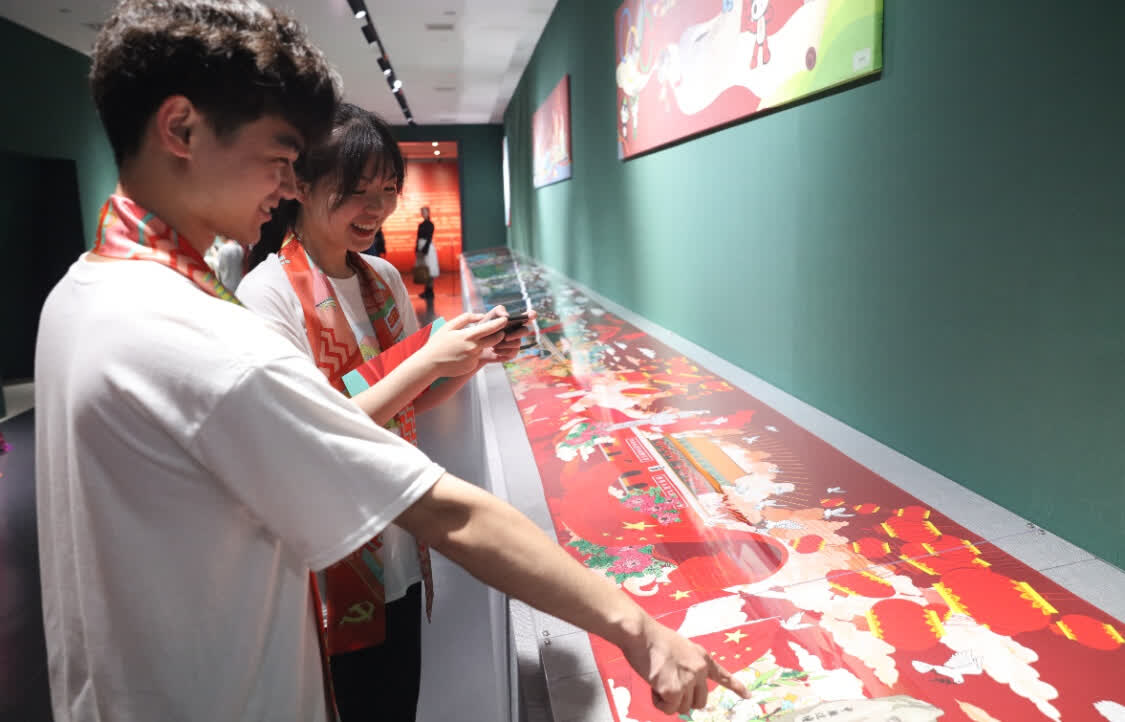 服装学院还组织了30余名师生绘制“红色征程”——百米长卷作品,按照时间顺序描绘了中国共产党奋进历程中的重要地点和历史事件,运用数码喷印技术制作了大宽幅、大纵深的丝绸长卷作品,展示100年来中国共产党不忘初心、前赴后继,带领全国各族同胞砥砺奋进、开拓进取的红色篇章。