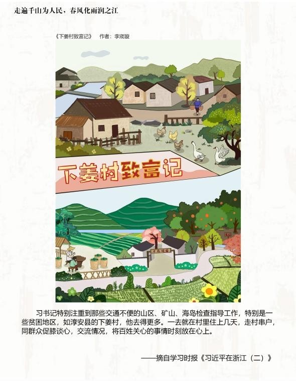 本专题学习《习近平在浙江》采访实录,回溯习近平总书记在浙江任职期间走过的山山水水,浙江理工大学艺术与设计学院的学生们,立足环境设计专业特色,用画笔绘就习近平新时代中国特色社会主义思想在浙江的实践过程,体现了总书记执政为民的伟大情怀,激励广大群众在新征程上继续辛勤耕耘、勇往直前。