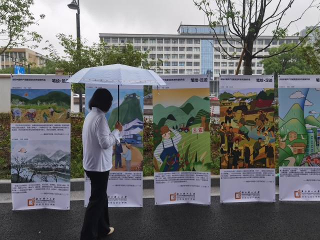 此次公开展览活动为期三天,浙江理工大学艺术与设计学院师生立足专业特色,用画笔绘制画册、画展、海报,分为“笔绘·足迹”“党史中的廉洁故事”“清廉西湖建设展示”等三个专题,全方位、立体化地展示廉政教育内容。