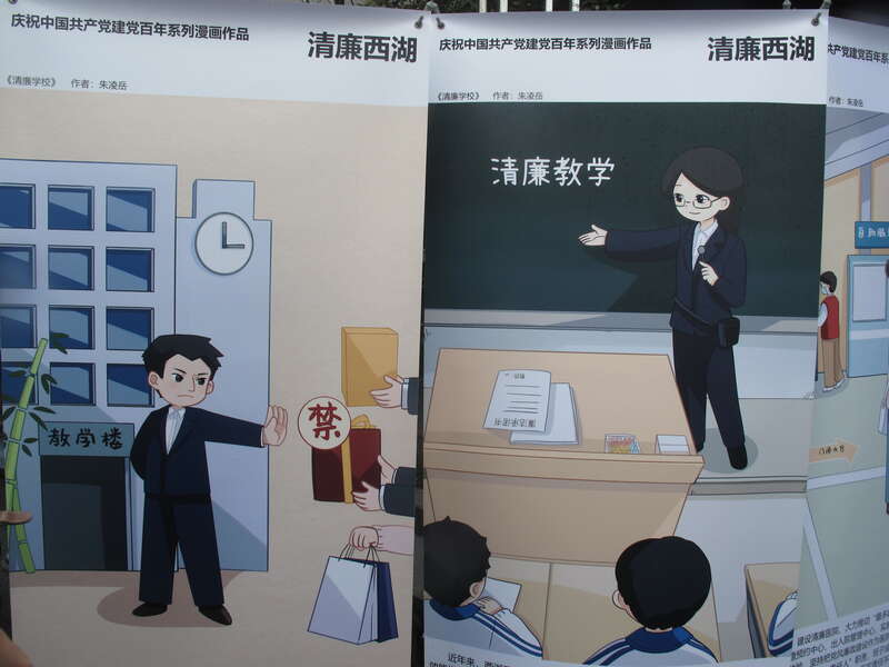 6月16日,“百年风华·清风筑梦”清廉文化漫画作品联合公展在杭州西湖区西溪街道溪畔社区开幕。展览由西湖区纪委区监委、浙江理工大学纪委主办,展出作品由浙江理工大学艺术与设计学院学生创作。展览以“清廉画册”“清廉画展”“清风书房”“清风路线”等为载体,积极挖掘新时代的清廉元素,通过高校与地方纪委的深度合作,深入打造具有鲜明辨识度和全国影响力的清廉文化本土品牌,建设清廉高地,营造以清为美、以廉为荣的良好氛围。
