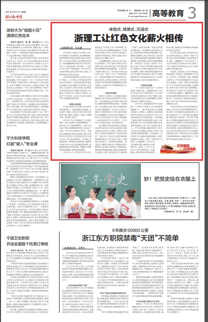 6月21日,《浙江教育报》高教版头条报道了我校红色文化薪火相传。