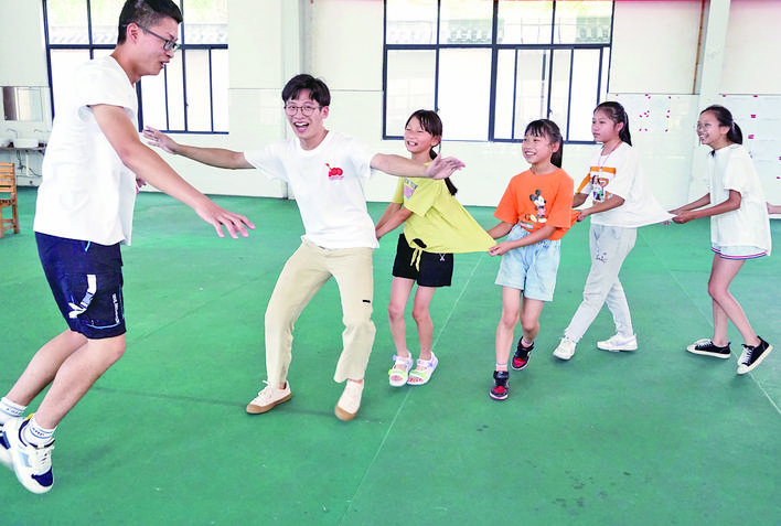 为解除农民朋友暑假无暇照管子女的后顾之忧,武义县利用农村文化礼堂办起暑期托管班。连日来,浙江理工大学和武义县茭道小学的志愿者,在朱王村精心照看暑期托管班的小朋友。 张建成 朱晓舒 摄