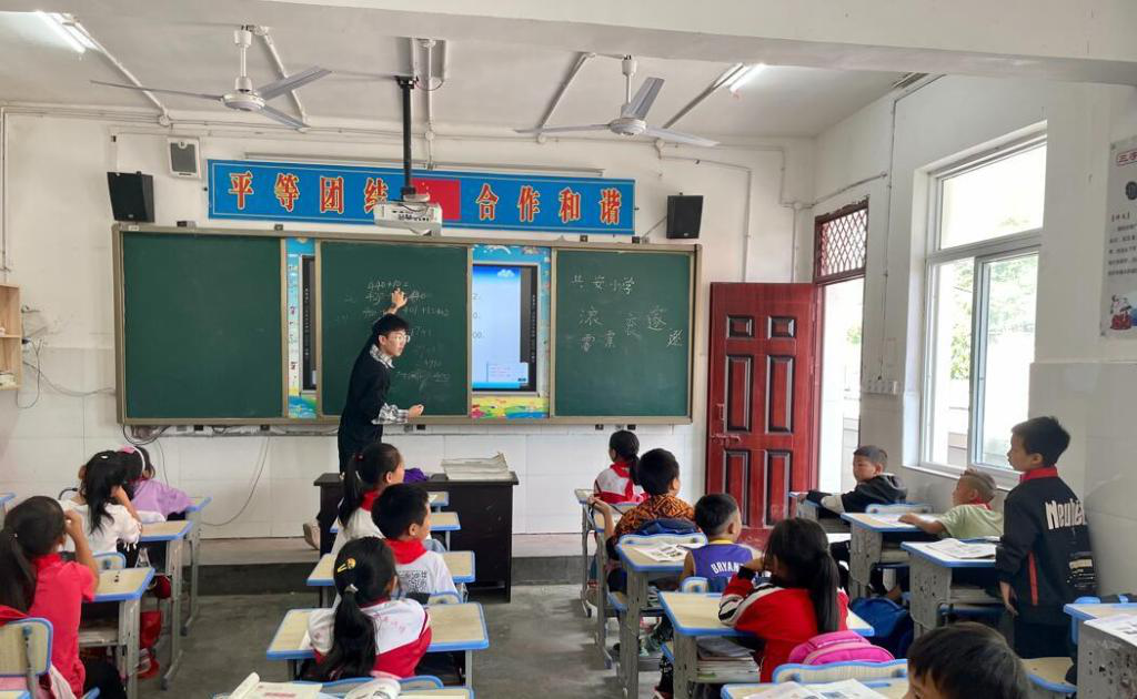 四年级一班的班主任兼语文老师周文已经有20多年的教龄,在共安彝族乡小学也已经工作了整整13年。“和小陈老师的合作,也是我们互相学习的机会。”虽然接触时间还不长,但在他的眼中,“小陈老师”不仅干练而充满活力,强烈的工作责任心更是深深打动了这位前辈。周文希望今后继续和陈鑫探讨交流教学方案,推动学生的课业水平提升和全面发展。