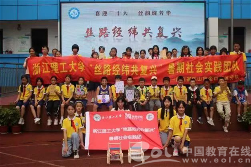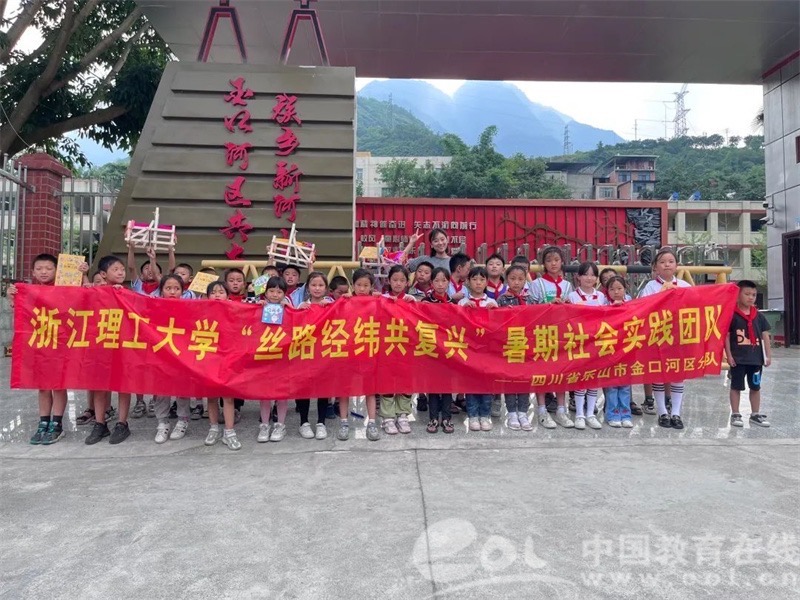 近日,浙江理工大学服装学院“丝路经纬共复兴”暑期社会实践团来到金口河,在永和镇第一小学、共安彝族乡新河小学、吉星小学开展了“喜迎二十大,丝韵绽芳华”主题趣味课程。