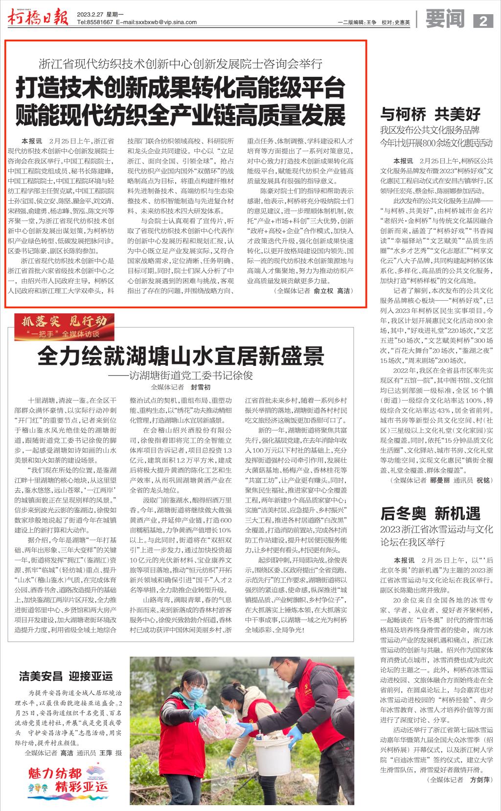 柯桥日报:打造技术创新成果转化高能级平台 赋能现代纺织全产业链高质量发展