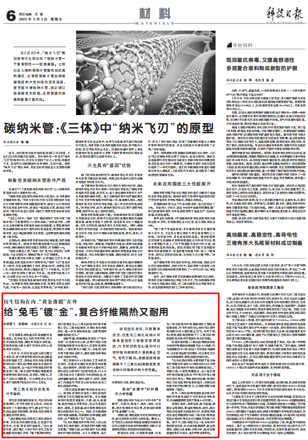 3月3日,科技日报(第6版)、中国科技网、学习强国(创新浙江)报道我校材料科学与工程学院司银松科研成果。