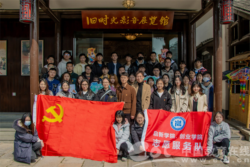3月4日,一次研学志愿活动在杭州市余杭区瓶窑镇的旧时光影音展览馆展开,浙江理工大学启新学院、创业学院的00后学生们参与活动。