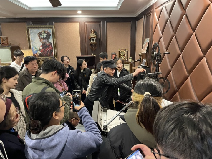 这里是杭州市余杭区瓶窑镇的旧时光影音展览馆,当晚观影的,是浙江理工大学启新学院、创业学院的3位老师。
