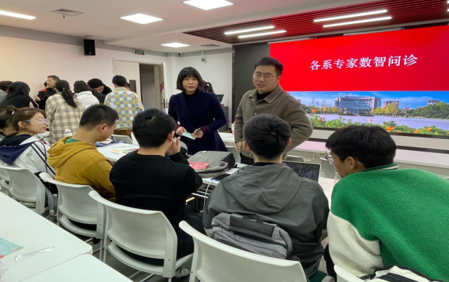 值得一提的是,来自各个教学系的专家教授把“考研坐诊台”搬到了“咨询直播会”现场,他们走进学生群体,为手持“数智问诊卡”的备考学生开展个性化一对一咨询,还相约定期为学生进行“考研问诊”,并在问诊卡上不断更新考生的复习动态。