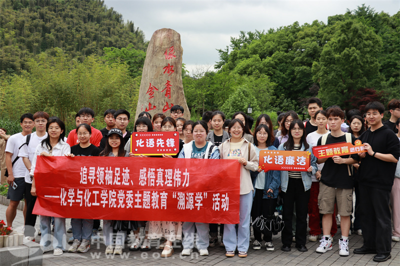 中国教育在线浙江站讯(记者陈显婷)“绿水青山就是金山银山”。趁着深入开展学习贯彻习近平新时代中国特色社会主义思想主题教育的东风,追寻总书记的脚步,近日,浙江理工大学化学与化工学院组织学生党支部近50人赴“两山”理论发源地安吉余村开展“循迹溯源学思想促践行”研学活动。