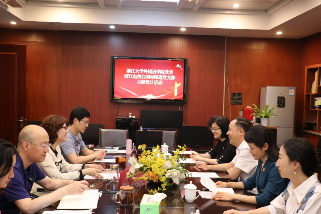 浙江大学外国语学院党委书记罗泳江、副书记费兰兰及教师代表,“讲好中国故事”宣讲团成员等学生党员代表一行来频道开展支部共建交流活动。